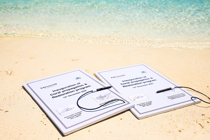 In a symbolic gesture that underscored the partnership’s focus, the MoU was signed underwater in the very lagoon where restoration efforts will be concentrated. Mr Mufaddal Idris Khumri, Managing Director of Maldives Islamic Bank, and Mr Alexander Traeger, General Manager of SAii Lagoon Maldives and The Marina @ CROSSROADS, both experienced divers, conducted the signing ceremony beneath the surface. The unique setting highlighted the direct connection between the agreement and the marine environment it aims to protect.